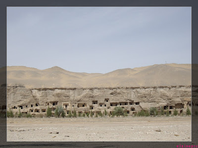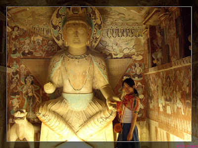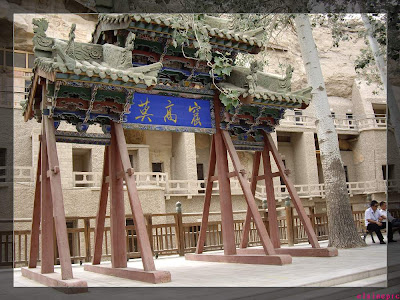 莫高窟里面是不许带相机进去的,只能在外面拍照留念了。
