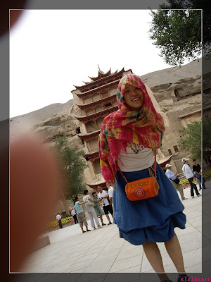 敦煌气候属于极地干旱大陆性气候,全年干燥少雨,昼夜温差极大,还有干热风和黑沙暴两大自然灾害,不要以为我披着纱巾是为了臭美,实在是漫天的风沙让人睁眼都困难啊~~
