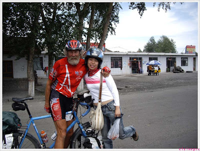 这个法国老头儿是一路从巴黎骑自行车骑过来的哦~他们一行102人,平均年龄60岁,准备去北京看奥运~就是一路从“巴黎——北京”, oh my god! 真是佩服、佩服啊!