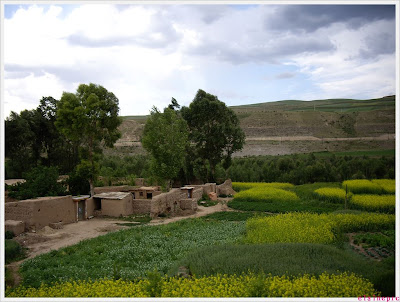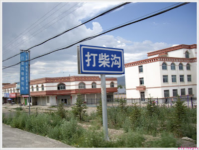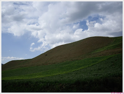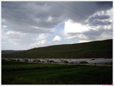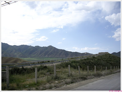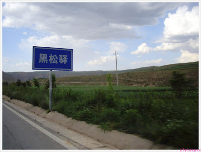 注意看远处的山口在冒烟,神仙显灵啊~~~走近了其实是个什么采石场的样子……