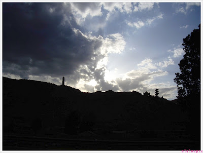 9点左右的夕阳西下,没错,是晚上9点,山上的古建筑还是影影绰绰的……